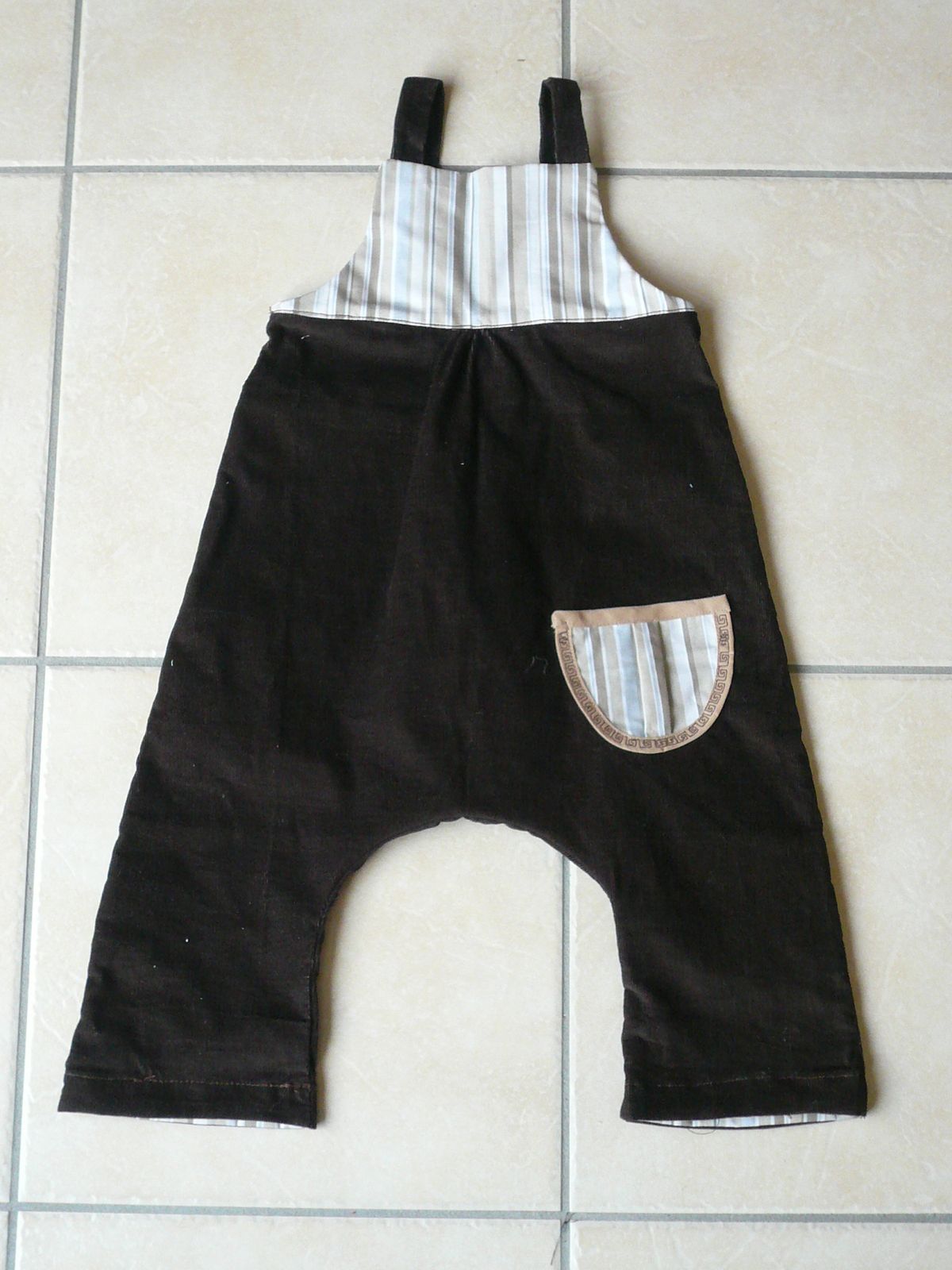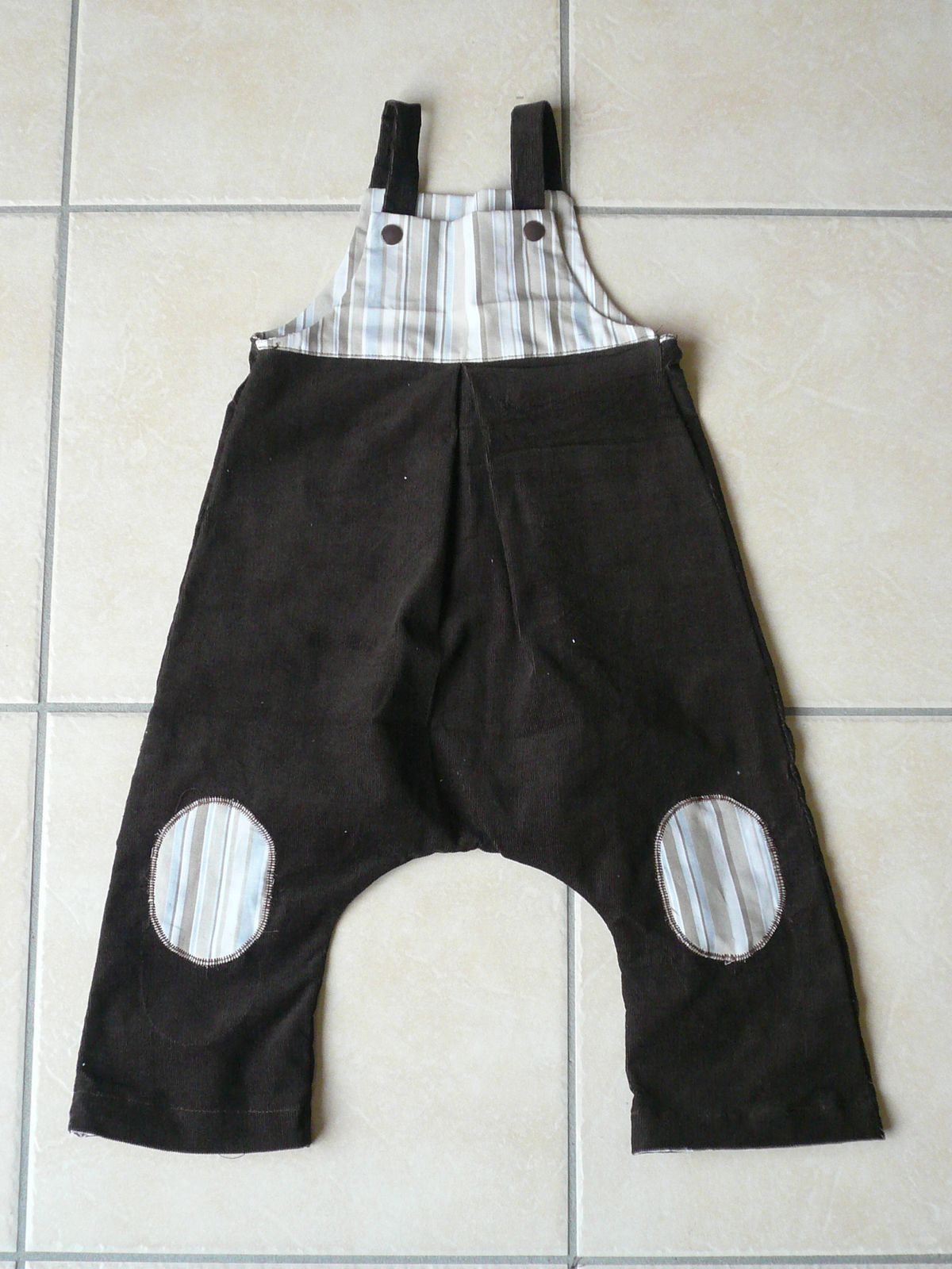 salopette "lottie" de citronille, allongée et un peu masculinisée. En velours milleraies cocolagirafe et coton butinette